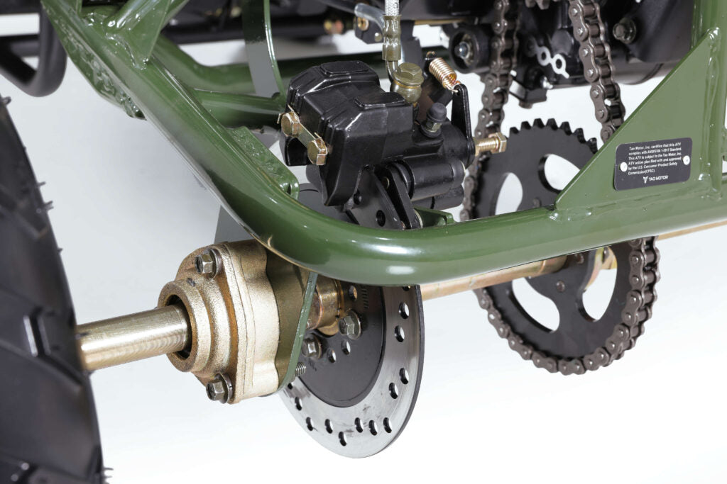 The Jeep Auto comes with a speed limiter so early riders don’t get too carried away and disk brakes front and rear provide ultimate stopping power. Additional improvements that just make sense include powder-coated a-arms and swing arms, and front and rear adjustable shocks. Ready for an adventure? The Jeep Auto is!